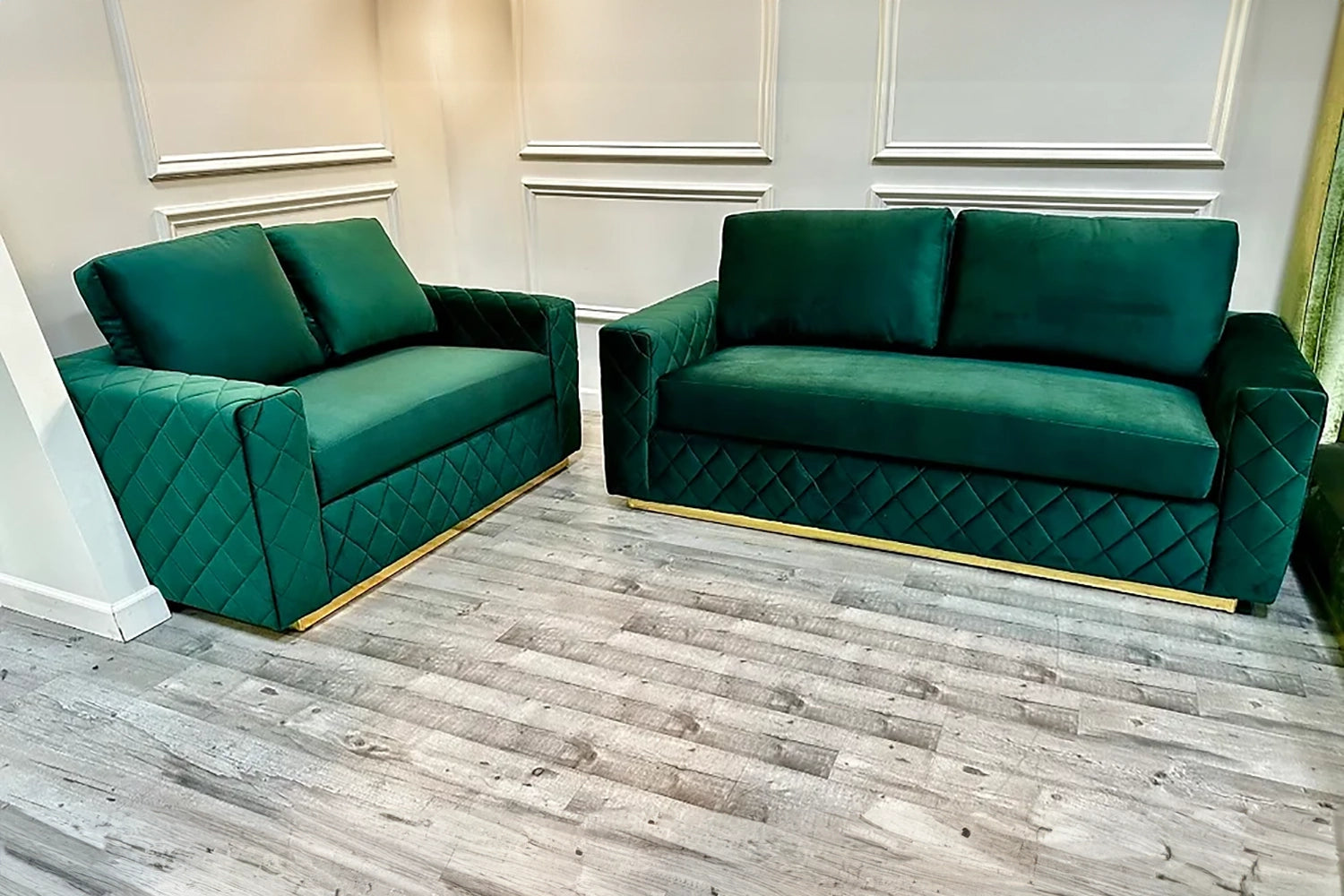 The Bellagio sofa and loveseat juxtaposes timeless touches and modern style, bringing an aura of casual luxury to your living room. This set has a streamlined design that fits easily in smaller spaces.